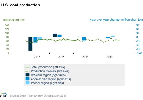 美國能源信息管理局EIA周二發布短期能源展望報告稱,2018年,美國煤炭產能預計達到7.512億短噸(約6.8億噸),較之上月預測的上漲1.7%。