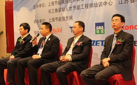 德國建筑樓宇節能技術專家/德國專家協會成員Claus Treppte先生做了德國低能耗建筑的設計與施工情況的分享,他指出在低能耗建筑中,節能可以通過低熱能消耗、節水、低冷消耗和節電完全,但是盲目地把所有設備和技術運用到這種建筑中是不可行的。在德國實行了節能規范,所有的建筑設計師、房屋的業主和施工人員全部要按照建筑節能規范來進行設計和施工,以實現新建房和改建房達到低能耗運行。 亮點之四:跨界合作,品牌企業開展“建筑暖通系統節能一體化”專題研討 珠海愛迪生節能科技有限公司、圖博節能科技(上海)有限公司、上海柯耐弗電氣有限公司、上海綠筑住宅系統科技有限公司、上海海立(集團)股份有限公司、雷文密封材料(上海)有限公司、杭州哲達科技股份有限公司、皇明太陽能股份有限公司、上海東方延華節能技術服務有限公司、深圳創維照明電器有限公司、上海安貞暖通設備工程有限公司等各位企業代表介紹各自在樣板房中使用產品的技術性能、集成應用及節能效果等。
