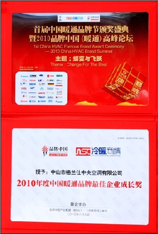——斬獲“最佳企業(yè)成長獎” 執(zhí)行總裁梁昭賢被授予“2010年度中國暖通界十大功勛企業(yè)家”榮譽稱號 2010年8月9日,由品牌中國產(chǎn)業(yè)聯(lián)盟和《冷暖商情》雜志聯(lián)合主辦的“2010首屆品牌中國(暖通)高峰論壇暨頒獎典禮”在京隆重舉行。建設(shè)部政策研究中心主任陳淮、品牌中國產(chǎn)業(yè)聯(lián)盟主席艾豐、品牌中國產(chǎn)業(yè)聯(lián)盟副秘書長張呂清等行業(yè)領(lǐng)頭人,格蘭仕、大金、海爾、美的、格力等國內(nèi)外著名中央空調(diào)廠家以及多家媒體代表等上百人出席了此次盛會。 本屆品牌節(jié)旨在尋求未來中國暖通業(yè)的發(fā)展方向,為行業(yè)發(fā)展搭建交流對話平臺,共議行業(yè)發(fā)展的熱點難點問題,研討企業(yè)調(diào)整結(jié)構(gòu)轉(zhuǎn)型升級之路,同時表彰那些具有卓越經(jīng)營業(yè)績和非凡發(fā)展特質(zhì)的優(yōu)秀品牌,樹立和推動行業(yè)標桿企業(yè)、優(yōu)秀方案及產(chǎn)品、成功應(yīng)用典范,全面展示中國暖通業(yè)的成果和輝煌。格蘭仕中央空調(diào)因令人矚目的發(fā)展速度和卓越的經(jīng)營業(yè)績斬獲“2010年度中國暖品品牌最佳企業(yè)成長獎”,同時格蘭仕集團總裁梁昭賢也被授予“2010年度中國暖通界十大功勛企業(yè)家”榮譽稱號。
