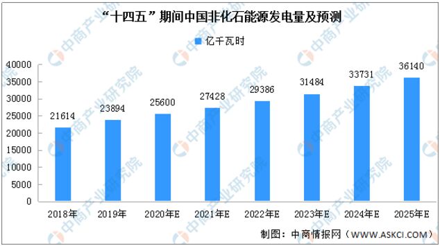 2020年9月22日,國家領導人在第七十五屆聯合國大會一般性辯論上的講話中,首次向全世界鄭重宣布,“中國將提高國家自主貢獻力度,采取更加有力的政策和措施,二氧化碳排放力爭于2030年前達到峰值,努力爭取2060年前實現碳中和。”在此背景下,結合當前經濟發展環境及政策趨勢,能源安全、清潔化轉型將是“十四五”我國重要的能源戰略,可再生能源也將在“十四五”迎來更大發展。 數據顯示,2019年中國能源消費總量為48.6億噸標準煤,較2010年36.1億噸標準煤增長34.6%。從能源結構來看,2019年我國一次能源消費結構中,煤炭、石油和天然氣分別占比57.7%、18.9%、8.1%,其中石油和天然氣的對外依存度分別為71%和43%;非化石能源占比為15.3%。 根據預測,非化石能源在一次能源消費中的占比有望在2025年達到20%。“十四五”期間,我國非化石能源消費總量將進一步提高,預計2021年約為52億噸標準煤,到2025年約為58億噸標準煤。非化石能源發電量同樣保持增長。據預測,2021年我國非化石能源發電量約為27428億千瓦時,到2025年將超過36100億千瓦時。