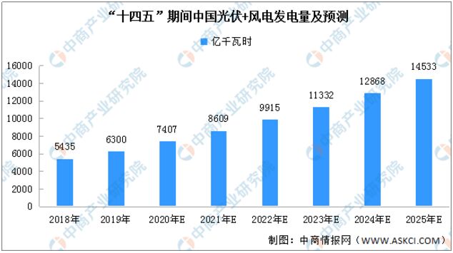 其中,光伏和風電是目前大為發展的兩種清潔能源。光伏是太陽能光伏發電系統的簡稱,是一種利用太陽電池半導體材料的光伏效應,將太陽光輻射能直接轉換為電能的一種新型發電系統,有獨立運行和并網運行兩種方式。而風力發電是指把風的動能轉為電能。 光伏和風電都是清潔無公害的可再生能源,“十四五”期間將得到進一步發展。預計2021年,光伏+風電的發電量將超8600億千瓦時,到2025年將超14500億千瓦時。