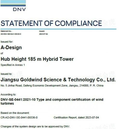 技術領先,權威認可。目前,金風科技185米鋼混塔架已經獲得DNV A-level設計認證證書,這也是金風科技在鋼混塔架領域繼95米鋼混塔架獲UL認證、140米鋼混塔架獲DNV認證后獲得的第三張國際認證證書。當前,金風科技鋼混塔架產品已累計獲得產品設計認證及型式認證30項,全面覆蓋公司的主流機型平臺。