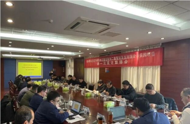 榆林市引黃工程建設管理局、榆林市黃河東線引水工程有限公司、黃河勘測規劃設計研究院有限公司、陜西省水利水電工程咨詢中心與江蘇航天水力設備有限公司就榆林百雨溝二級泵站及其附屬設備的整體結構、主要部件拆裝方式、總體布置方案、水力過渡過程計算、供貨界面等問題召開了第一次設計聯絡會。會議對航天水力提供的設計文件進行了充分討論,并形成會議紀要。