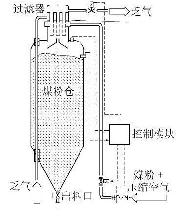 隨著經濟社會發展和城市化進程的加速,我國中東部地區大氣復合污染的態勢日益嚴峻,突出表現在京津冀、長三角和珠三角等城市重度霧霾現象頻發。據有關部門統計,工業燃煤排放的污染物占霧霾來源和成因的30%~40% 。為了使大氣污染狀況得到改善,提高燃煤工業鍋爐的燃燒效率以及降低污染物的排放迫在眉睫。 1、煤粉工業鍋爐關鍵技術 煤粉工業鍋爐是由煤粉儲存塔(罐)、供料器、燃燒器、鍋爐本體、煙氣污染物聯合脫除裝置、灰庫、點火油(氣)站、壓縮空氣站、惰性氣體保護站及測控 10個子系統組成。設計、組裝該系統主要有6項關鍵技術,即煤粉制備與運輸、煤粉安定儲存、濃相煤粉輸送、煤粉燃燒器、鍋爐本體和低排放煙氣凈化。 1.1 煤粉制 煤粉的加工工藝主要有2種: ①烘干與磨制分離的兩步法工藝; ②磨制與烘干同時進行的一步法工藝。前一種工藝對設備的要求低,且系統容易控制,但功能分散、工藝鏈長,僅適用于小規模制粉。后一種系統工藝簡單,適合大規模制粉,但對磨機設備及工藝安全性要求高。兩步法工業磨機以雷蒙磨為主,一步法工藝磨機一般采用高溫立磨。煤粉的配送由加裝氮氣保護的專用罐車完成,在煤粉加工配送中心與煤粉工業鍋爐之間可實現無縫對接,根據應用經驗,罐車的經濟覆蓋半徑最大為100km。 無論采用何種工藝和設備,為了杜絕發生爆炸等事故,在煤粉制備整個流程中車間內應嚴禁揚塵的出現,各個設備應保持良好的密封性且回轉窯、磨機應負壓運行。回轉窯是用于烘干煤粉的設施,內部溫度高達700℃,在此溫度下煤塊有部分揮發分析出; 在初步破碎的過程中會產生少量的細粉,在回轉窯轉動時細粉懸浮在空中形成可燃性粉塵。 綜合這些因素回轉窯內部既有可燃性粉塵也有可燃性氣體,形成氣-固可燃性爆炸物。烘干煤粉的煙氣含氧量高達12% ,回轉窯內部同時具備發生爆炸事故的三要素,因此急需對其氣-固可燃性爆炸物的最低點火能、爆炸下限等性質進行研究,開發連鎖保護裝置,以杜絕爆炸事故的發生。 1.2 煤粉安定儲存技術 煤粉儲存的關鍵裝置是煤粉儲存塔(罐) ,儲罐本體是在常壓下使用的耐壓容器( 設計壓力不低于0.35 MPa),為了防止靜置煤粉壓實“結壁”和起拱架橋,根據煤粉的流動特性,在煤粉存儲塔(罐)下部設計半錐角小于20°的錐斗,并在錐斗壁面開孔通入壓縮空氣。從煤粉的安全性考慮,煤粉儲存塔(罐)結構及其附屬設施設置通常要采用多種安保措施,包括靜電接地、殼體耐壓、防爆門泄爆、傳感器監控及惰性氣體保護等,結構如圖1所示。運行過程中,來自煤粉加工廠或配送中心的密閉罐車與煤粉儲存塔(罐) 燃料加注管快速對接。罐車內的煤粉被車載壓縮空氣或用戶自備壓縮空氣加壓流化,進料閥門開啟,煤粉流即以密相的形式快速注入罐內。風粉分離,煤粉靠自重下落,輸送風則通過煤粉儲罐頂部的布袋除塵器過濾后排入大氣。若發現罐內溫度快速升高并超過警戒溫度或CO濃度報警,應啟動惰性氣體保護裝置,即先從罐體底部注入N2,置換罐內O2,再從頂部注入CO2,覆蓋煤粉表面,起到隔絕空氣的作用。