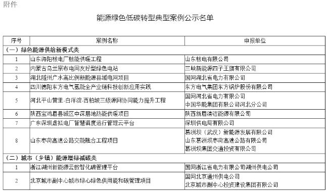 國家能源局綜合司關于能源綠色低碳轉型典型案例的公示