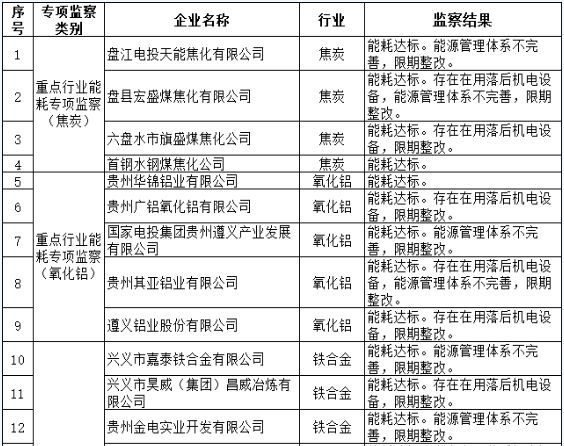 11月12日,貴州省工業和信息化廳公布2021年貴州省國家工業專項節能監察結果,118家企業在列,詳情如下: