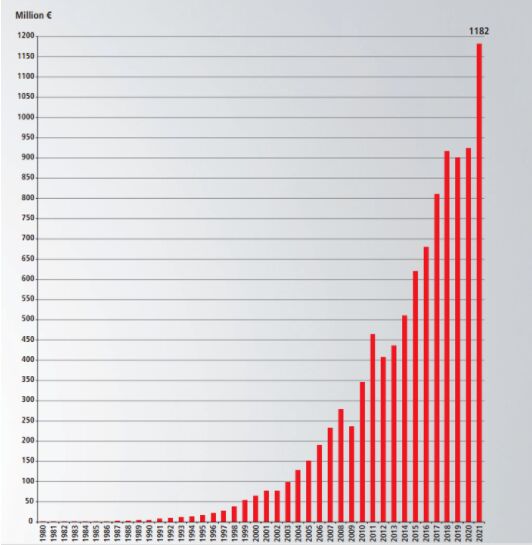 Hans 將公司取得的歷史性成就大部分歸功于“和諧發(fā)展”戰(zhàn)略。倍福在通過收購小型企業(yè)進(jìn)行擴(kuò)張時,更注重的是他們能夠提供的技術(shù),而不是他們的市場份額。“公司正在以可持續(xù)的方式發(fā)展。在過去的 22 年里,我們的年均增長率始終保持在 15% 左右。我們的業(yè)務(wù)模式具有高可擴(kuò)展性,我們現(xiàn)在希望進(jìn)一步擴(kuò)大公司規(guī)模。”Hans 說道。到 2022 年年底,倍福將力爭實現(xiàn)增長 20-23% 的目標(biāo),全球營收或?qū)⑦_(dá)到 14.5 億歐元。