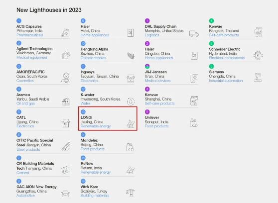 12月14日,世界經濟論壇(WEF)公布最新一批“燈塔工廠”名單,全球共21座工廠新入選,隆基綠能嘉興基地是全球光伏行業唯一入圍工廠,這意味著全球光伏行業首個 “燈塔工廠”誕生,隆基綠能在智能制造和數字化領域已經達到了世界領先水平,是引領全球制造業發展趨勢的“燈塔”。