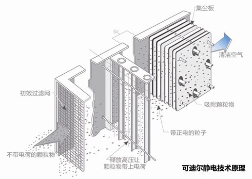 可迪爾為中國(guó)帶來(lái)卓越的靜電技術(shù) 可迪爾采用高效靜電技術(shù),高效靜電過(guò)濾器前端配有初效過(guò)濾網(wǎng),雙重過(guò)濾,保證凈化效果。 靜電原理:帶有顆粒物的廢氣在高壓電場(chǎng)下進(jìn)行電離,使顆粒物帶上電荷,當(dāng)帶有電荷的顆粒物進(jìn)入靜電集塵區(qū)域時(shí),顆粒物被吸附在靜電板上,完成靜電凈化過(guò)程。