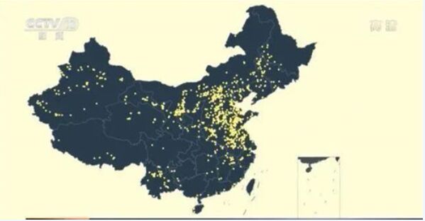 當放眼全國,中科院空天院利用衛星遙感影像,為我們精準提取出了光伏基地的分布情況。地圖上的每一個亮點,就代表一個光伏集中發電區,截至2019年,這樣的區域就有2600多個。這讓我國光伏發電的裝機容量迅速增長。