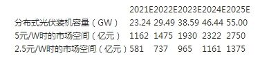 按照CPIA對分布式光伏新增容量的預測,樂觀情況下,我國到2025年的分布式光伏新增裝機容量為55GW,如果按5元/W的造價,到2025年,我國分布式光伏的市場空間將達到2750億元,呈現千億級的市場潛力,公司積極發展分布式光伏項目,具有較大的成長空間。 樂觀情況下2021-2025年我國分布式光伏市場空間預測