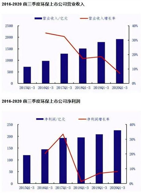 統(tǒng)計(jì)數(shù)據(jù)顯示,今年前三季度,我國環(huán)保相關(guān)上市公司營業(yè)收入同比增長7.1%,凈利潤同比增長8.1%。 生態(tài)環(huán)境部科技與財(cái)務(wù)司、中國環(huán)境保護(hù)產(chǎn)業(yè)協(xié)會(huì)日前聯(lián)合發(fā)布的《中國環(huán)保產(chǎn)業(yè)發(fā)展?fàn)顩r報(bào)告(2020)》稱,2019年全國環(huán)保產(chǎn)業(yè)營業(yè)收入約17800億元,較2018年增長約11.3%。報(bào)告預(yù)測,2021年我國環(huán)保產(chǎn)業(yè)營業(yè)收入總額有望超過2萬億元,到2025年有望突破3萬億元。 來源:第一財(cái)經(jīng)