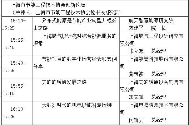 上海市節(jié)能工程技術(shù)協(xié)會換屆大會暨創(chuàng)新論壇 會議議程