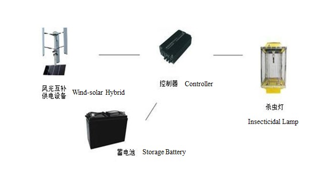 解決方案:風光互補殺蟲燈由風力發電機、太陽能電池組件、殺蟲燈具、控制器、蓄電池和燈桿等組成,具有光控、時控、雨控、過充過放和短路保護等功能。白天當陽光充足時太陽能電池板發電供給殺蟲燈,當陰天下雨往往沒有太陽但是有風,又能較好的利用風能發電,電能存儲在蓄電池中,對太陽能資源缺乏或風能缺乏的地區農田里殺蟲,有較好互補性。夜間利用害蟲的趨光、趨色、趨波的特性,引誘害蟲撲向光源,光源外配置高壓網物理方式殺滅害蟲。